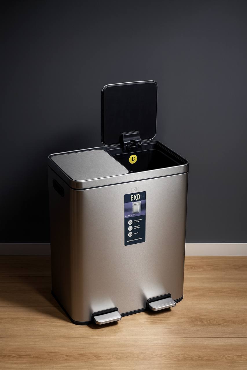 سطل زباله دو مخزنه 20 + 20 لیتر برند EKO، راهکاری هوشمندانه برای مدیریت زبالههای خانه شماست. با طراحی شیک و کارآمد، فضای آشپزخانه شما را مرتب نگه میدارد. دو مخزن جداگانه، امکان تفکیک زبالههای خشک و تر را فراهم میکند. اکنون با خرید این محصول، تمیزی و زیبایی را به خانهتان هدیه دهید!