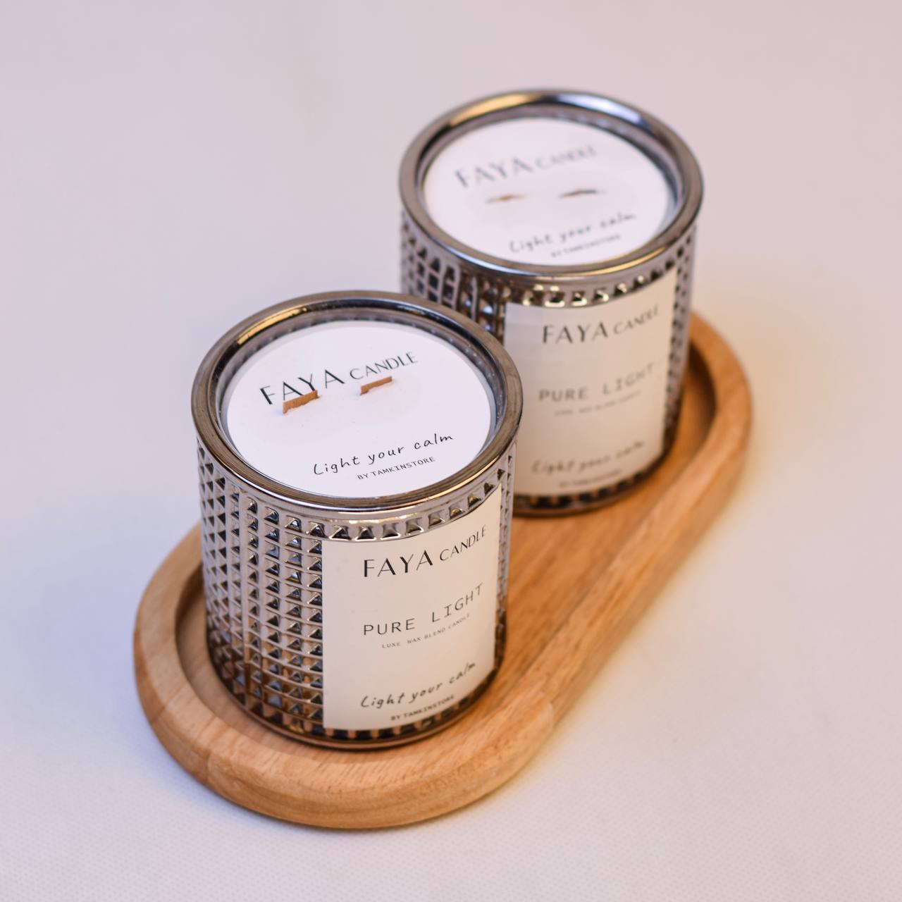 سینی چوبی + دو عدد شمع لیوانی